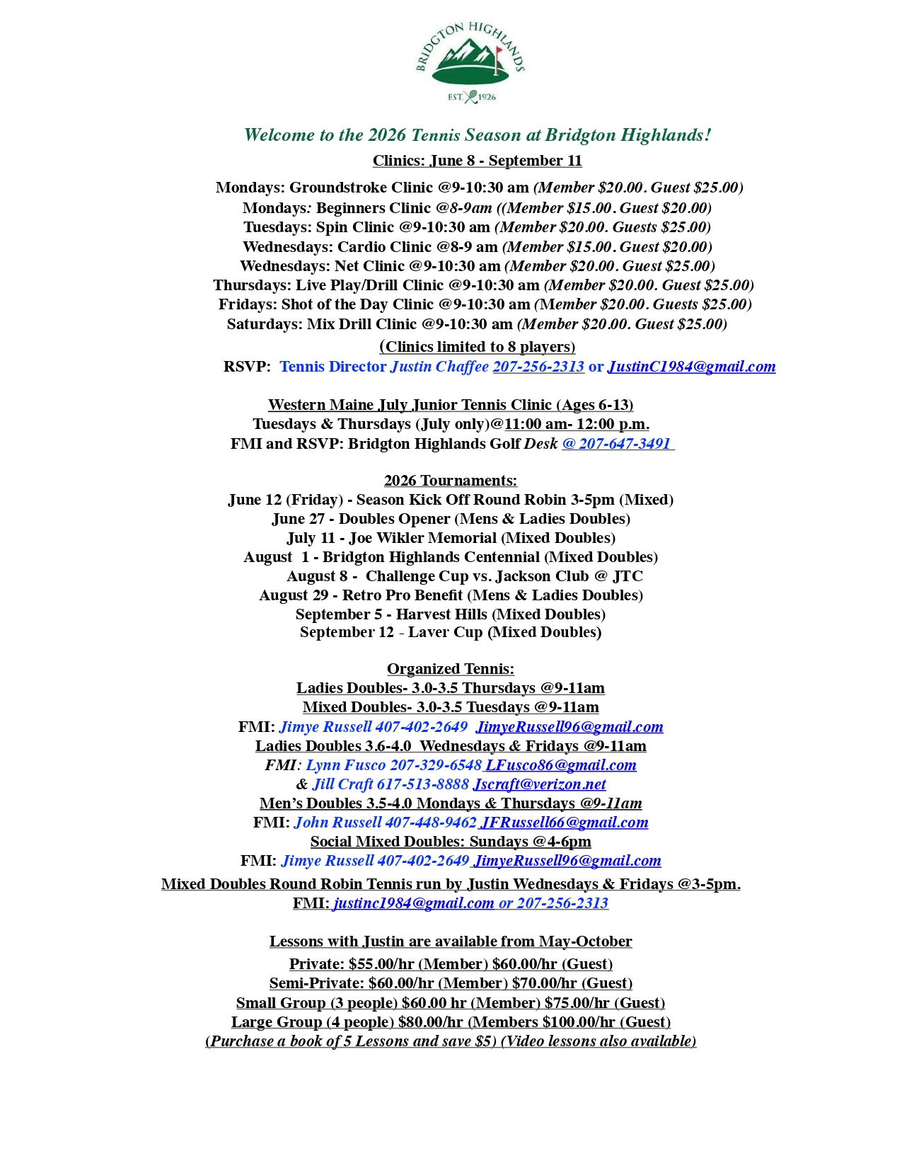 Tennis Clinics & Tournaments